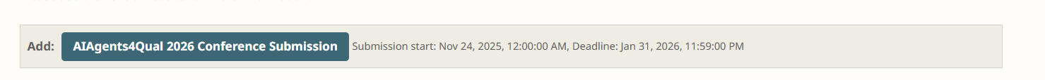 2. Click on the button: AIAgents4Qual 2026 Conference Submission, enter the required information and upload your submission.